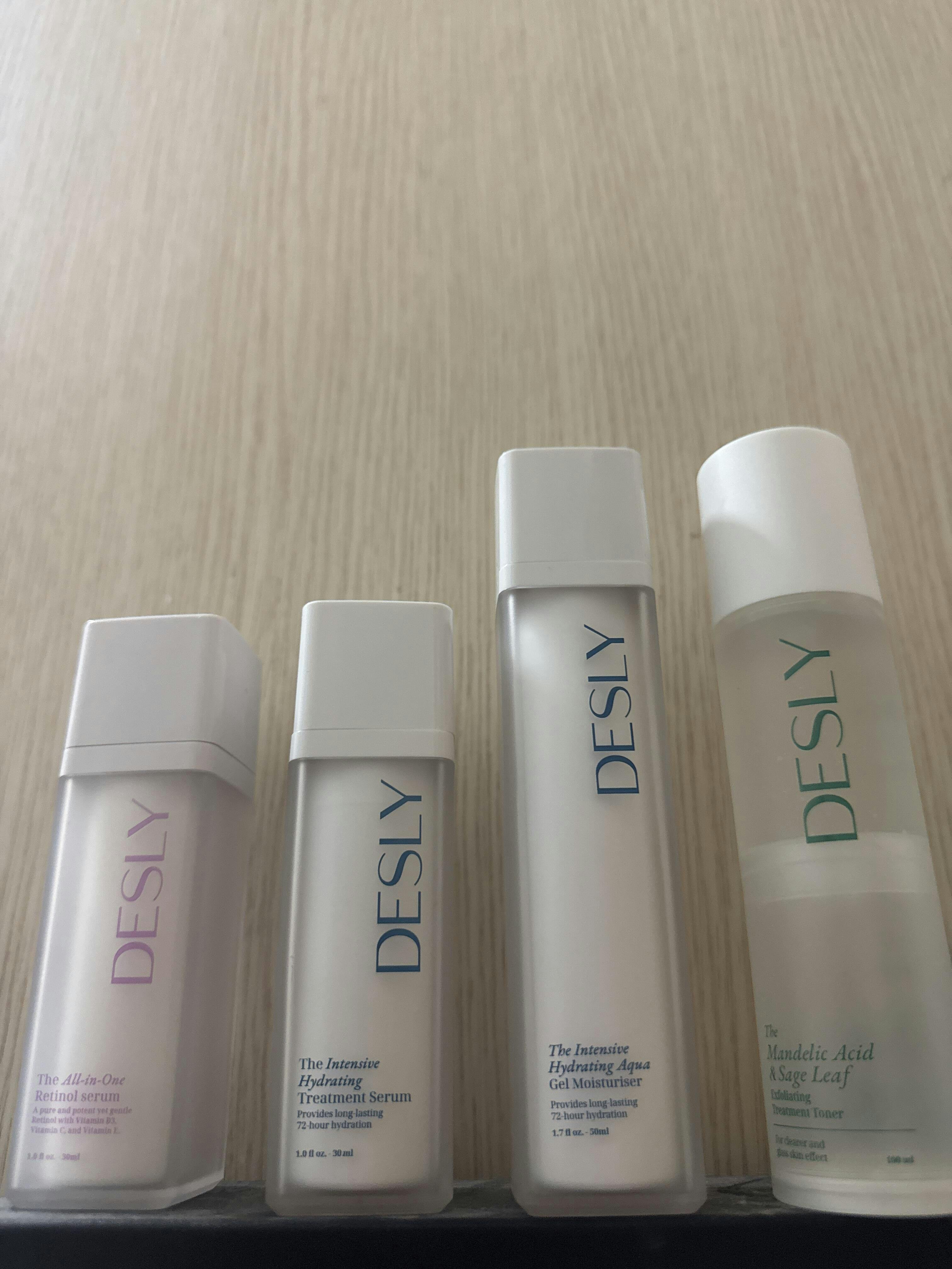 - Evening: DESLY The All-In-One Retinol Serum / The Lactic Acid Exfoliating Treatment