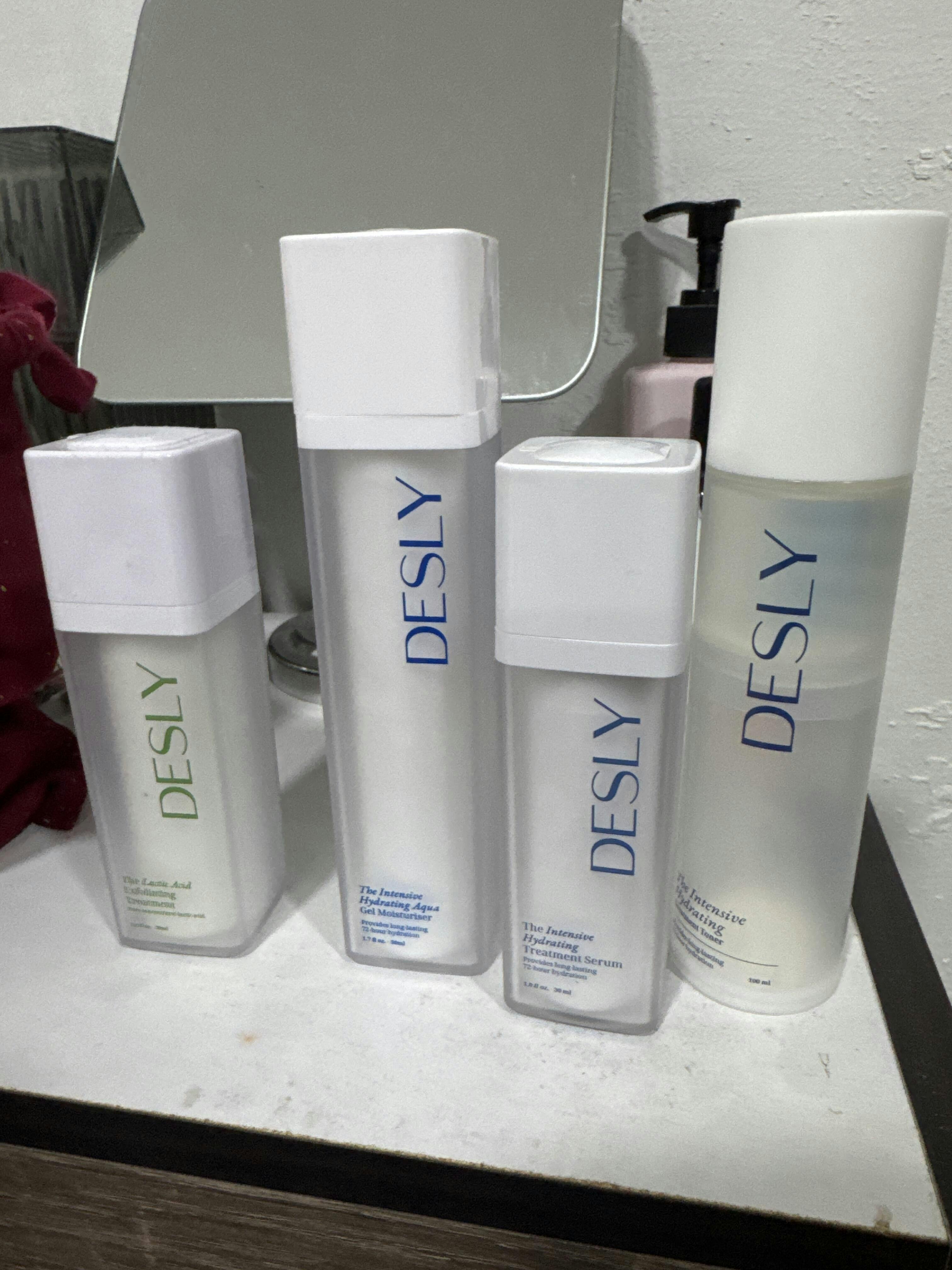 - Evening: DESLY The All-In-One Retinol Serum / The Lactic Acid Exfoliating Treatment